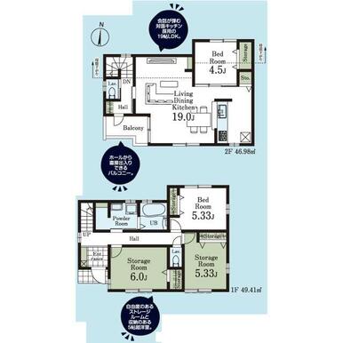 | 設備 | システムキッチン 床下収納 モニタ付インターホン ディンプルキー 浄水器 浴室乾燥機 追焚機能 シャワー付洗面化粧台 人感センサー付照明 ダウンライト 照明器具 | ||